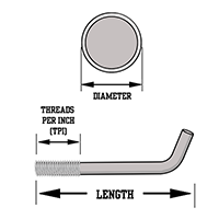 | 1-8 W/ BENT LEG ANCHOR BOLT 1-8 W/ BENT LEG ANCHOR BOLT/Asset/Bent-Leg-Anchor-Bolts.png | Diameter (in) N/A 1 | Pitch Size (tpi) N/A 8 | Grade N/A A193 B7 A307 F1554 | Finish N/A Galvanized Plain Zinc |