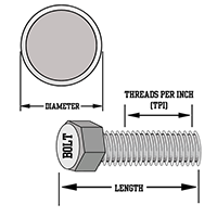 | 1/4-20 HEX HEAD BOLT 1/4-20 HEX HEAD BOLT/Asset/Hex-Head-Bolts.png | Diameter (in) N/A 1/4 | Pitch Size (tpi) N/A 20 | Grade N/A A307 A325 | Finish N/A Galvanized Plain Zinc |